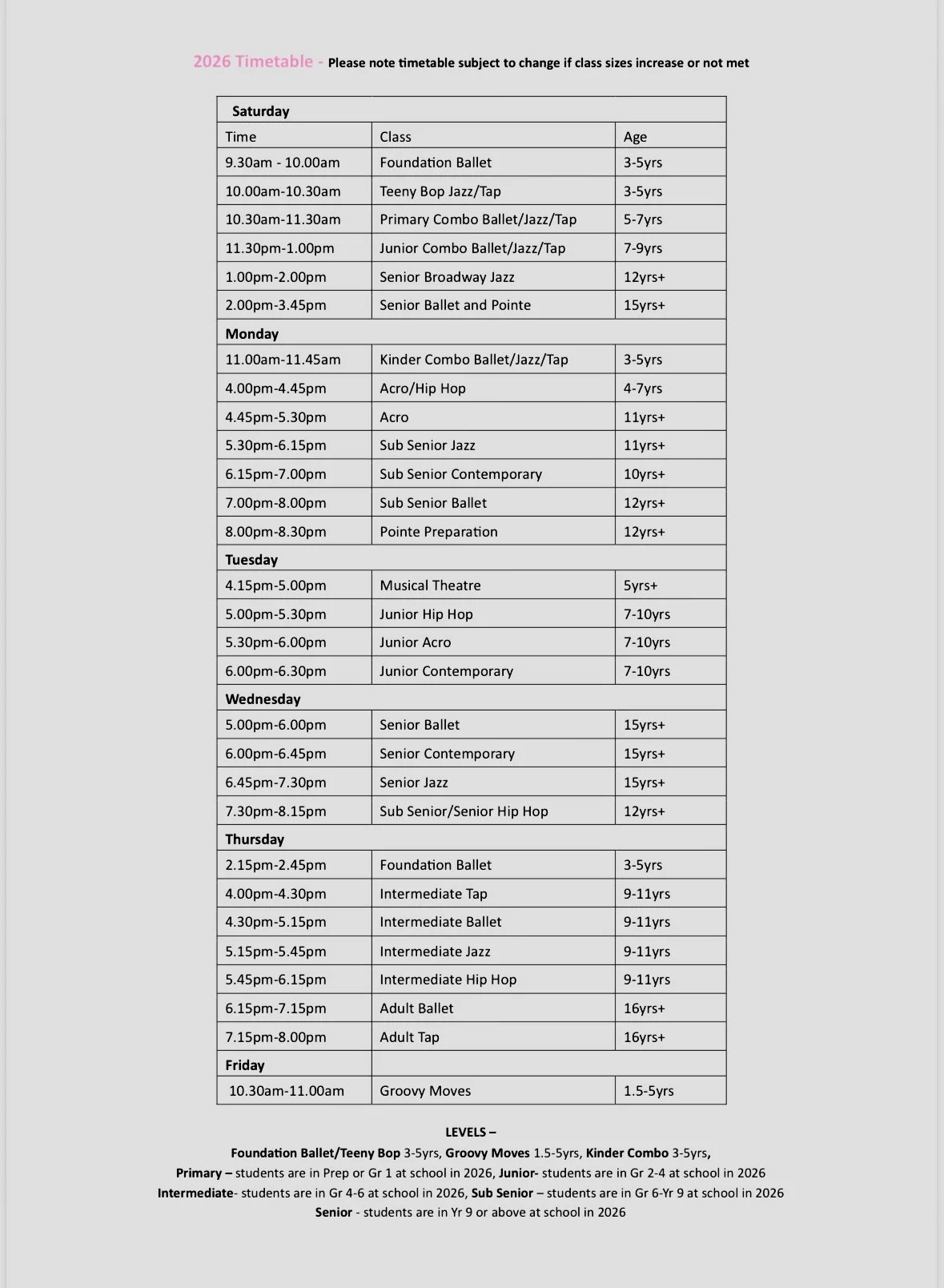 Timetable